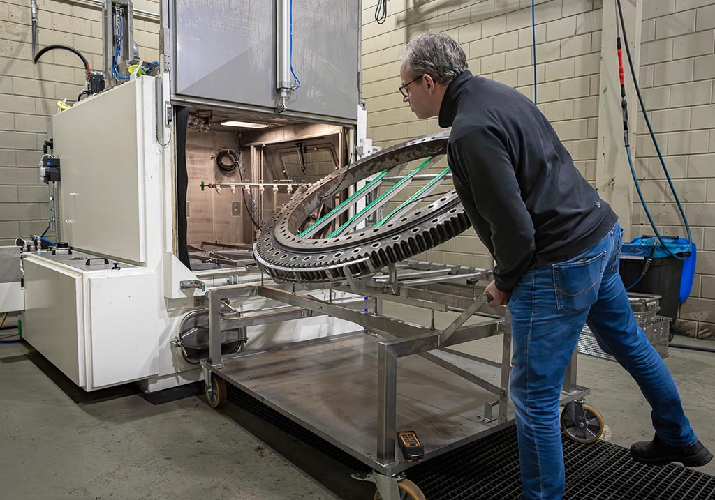 Onze professionele wasmachine is speciaal voor ons ontwikkeld en zorgt voor een nóg sneller (en schoner) resultaat m.b.t. de inspectie voor revisie van uw draaikransen.